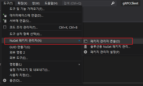 저는 Grpc.Tools을 설치하기 위해 아래 코드를 입력했어요