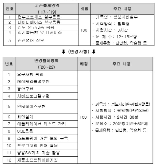 2020년에 NCS 기반으로 변경된 정보처리기사 실기는 기존 5과목에서 총 12과목으로 변경이 되었습니다.