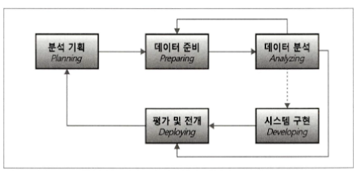 - 빅데이터를 분석하기 위해 문제를 정의하고 답을 도출하기 위한 체계적인 절차와 처리 방법