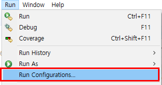 6) Run Configuration에 들어가서 외부 웹 브라우저로 실행하는 설정이 되어 있는지 확인한다