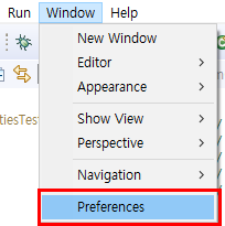 1) 먼저 Window - Preferences 설정에 들어간다.
