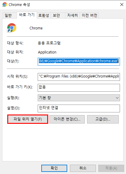 * 파일 위치 찾는 방법은 속성 - 파일 위치 열기 - 경로 복사로 쉽게 찾을 수 있다.