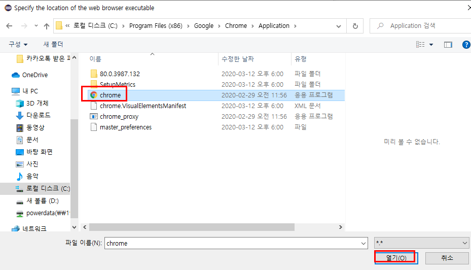 4) Browse... 버튼을 눌러 경로를 복사해서 chrome을 선택하고 Ok을 누른다.