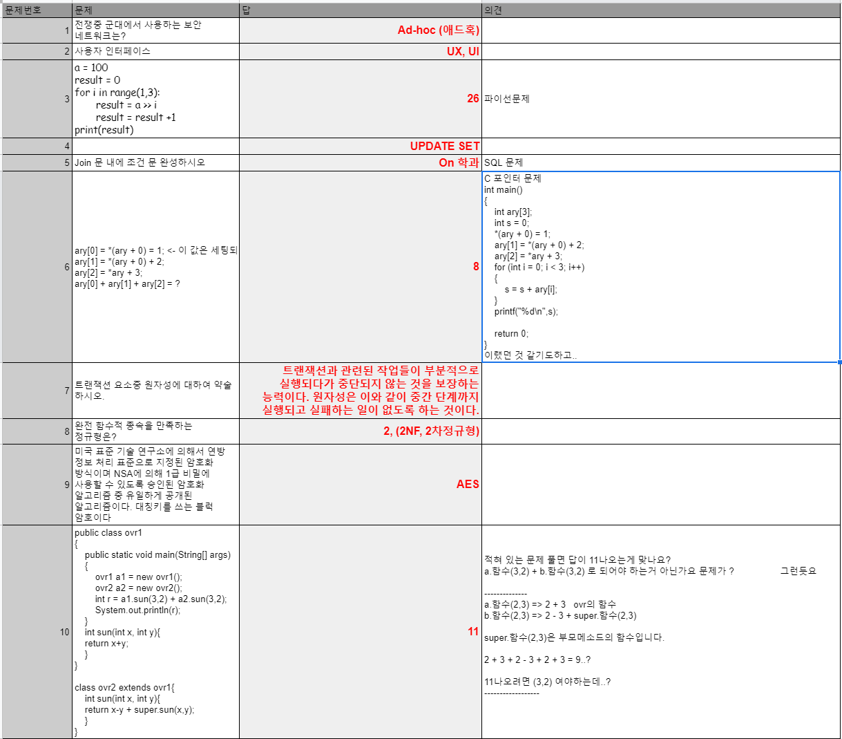 디자인 패턴에서 어떤 패턴인지 고르라는 문제나, 정규형 문제나, UX&UI 문제, 암호화 기법 문제.