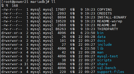 압축을 풀면 파일이름과 동일한 폴더가 생성이 되는데, mv 커맨드를 사용해서 적당한 이름의 폴더로 옮겨준다. 마리아db니까 mariadb라는 이름의 폴더를 만드는게 편하다.
