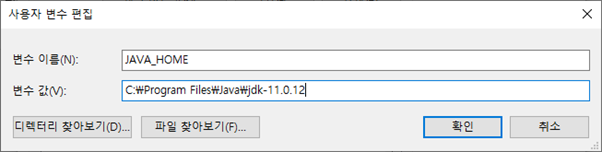 설치가 되었으면 jdk의 환경변수를 잡아주어야 하는데, 이때 무조건 JAVA_HOME이라는 변수를 생성해주어야 합니다!