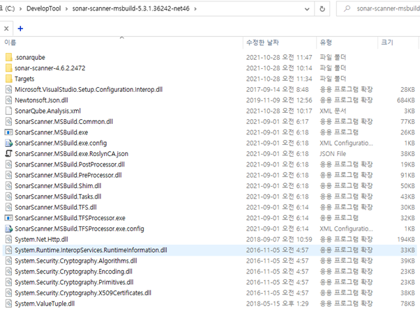.Net Framework는 SonarScanner라는 프로그램을 별도로 설치해야 소스 코드 분석이 가능합니다.