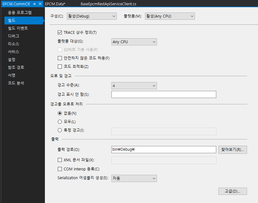 빌드 - 고급을 선택해줍니다.