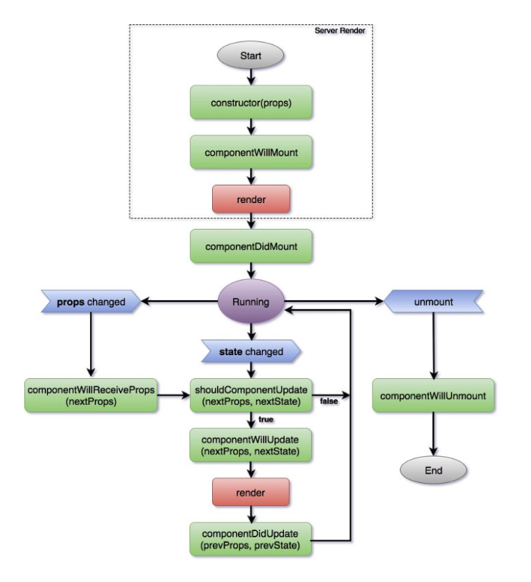 컴포넌트가 렌더링 되기 전에 제일 먼저 생성자가 호출 되고, 그 다음에 WillMount(렌더링 되기 직전), Render, ComponentDidMount(컴포넌트 렌더링 완료) 이런 순서로 진행이 됩니다.