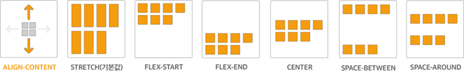 align-content 속성은 flex item이 여러줄로 나열되어 있을 때, 주축을 기준으로 수직 정렬 방법을 설정하는 속성입니다.