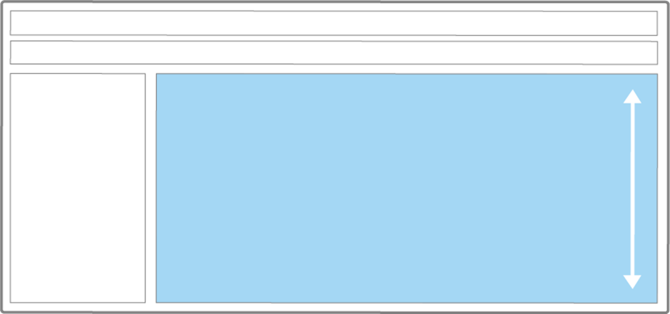 이 레이아웃에서 만약 파란색 부분의 콘텐츠의 길이가 길어지면 브라우저에 스크롤 막대가 나타나는 것이 아니라, 콘텐츠 영역에서 나타나게 됩니다.