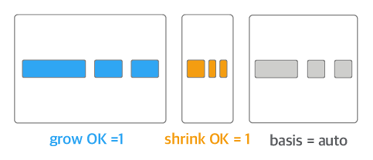 flex container인 부모 요소 크기에 따라 flex item인 자식 요소의 크기가 콘텐츠의 크기보다 줄어드는 레이아웃입니다.