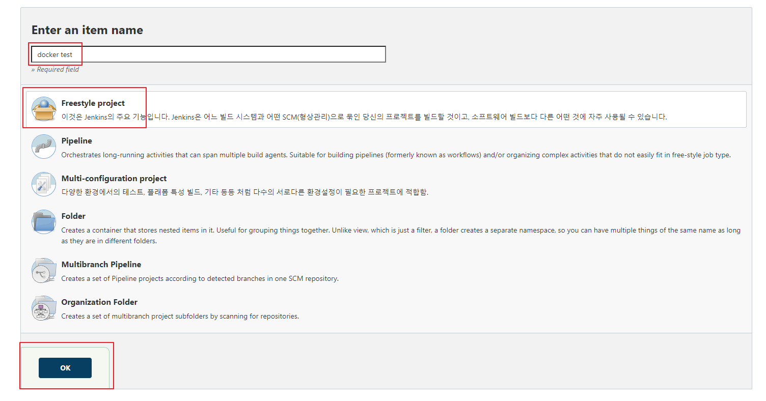 docker test라고 프로젝트를 생성해줍니다