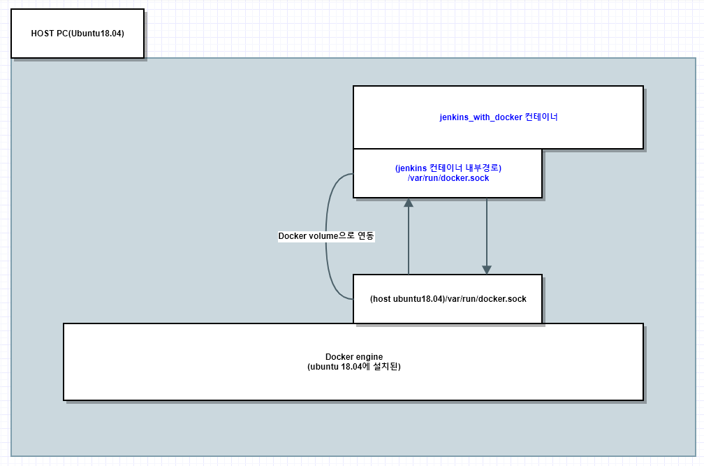 컨테이너는 독립된 환경인데, 컨테이너에 설치된 젠킨스가 컨테이너들을 관리하려면 도커 볼륨을 연동해서 아래와 같은 느낌으로 구성해줍니다.