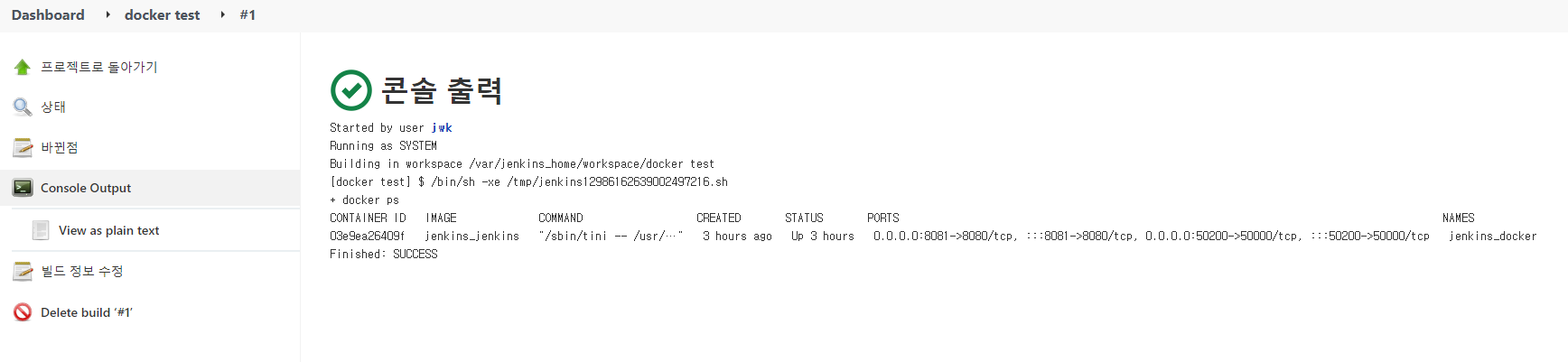 build now를 선택해서 확인하면