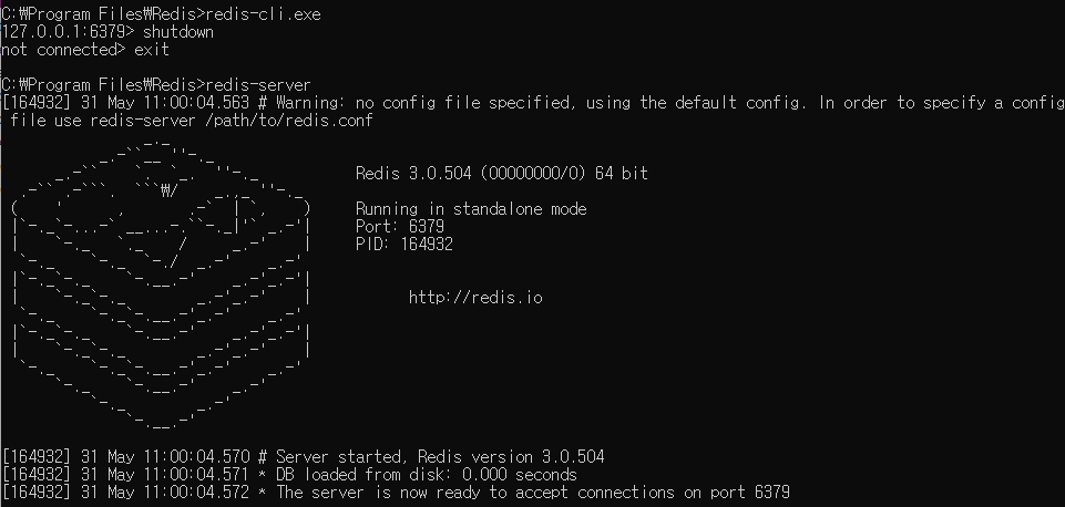Window에서 레디스 설치파일을 통해 설치를 하고, 기본 설치 경로("C:\Program Files\Redis")로 들어가서 redis-server.exe를 cmd로 실행하면 서버가 동작한다고 해서 따라했는데