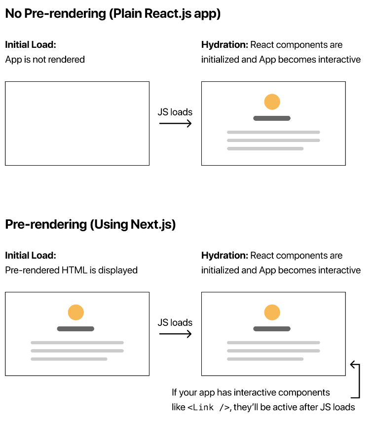Next.js는 브라우저에 렌더링 할때 기본적으로 pre-rendering(사전 렌더링)을 해줍니다.