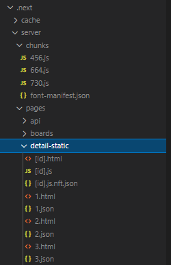 getStaticPaths에서 정적으로 지정했기 때문에 이 1,2,3 페이지는 static file로 생성됩니다.