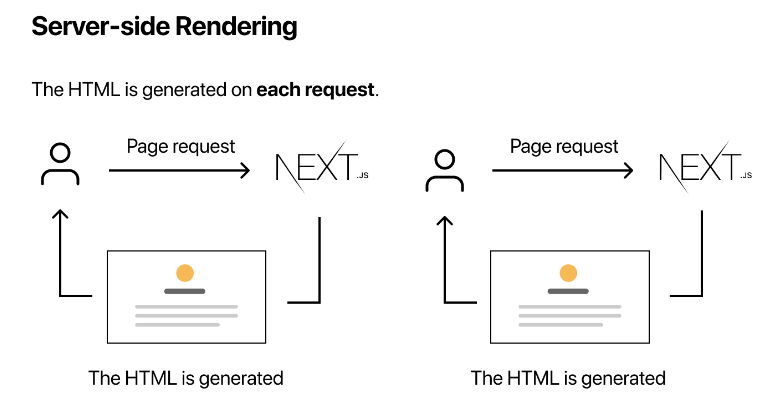 SSR은 유저가 페이지를 요청할 때마다 그에 맞는 HTML 문서를 생성해서 반환합니다.