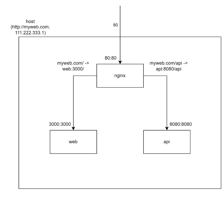 따라서 아래와 같이 사용자 -> nginx -> 웹서버로 구성해서 사용자의 요청을 nginx가 대신 웹서버로 전달해주도록 구성합니다.