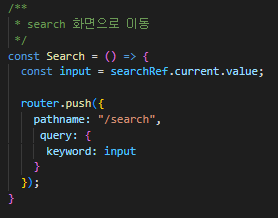 Next.js에서 router를 사용해서 페이지 이동을 할때, query에 keyword를 담아서 페이지 이동을 시키려고 했습니다.