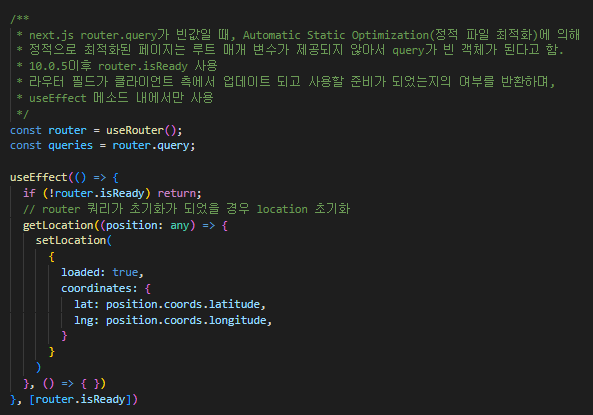저 router의 isReady를 useEffect에서 감시하도록 두고 그 내부에서 쿼리로 받은 데이터를 사용하면 됩니다!