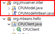 - Server 측의 MBeans에 해당하는 CPUModel과 CPUModelMBeans 클래스와 인터페이스를 Client 측에서도 똑같이 구현 해주어야 한다.