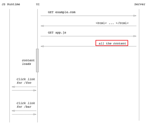 반면, 사용자의 액션에 따라 필요한 부분만 다시 읽어드리기 때문에 인터랙션이 빠르다는 장점이 있습니다.