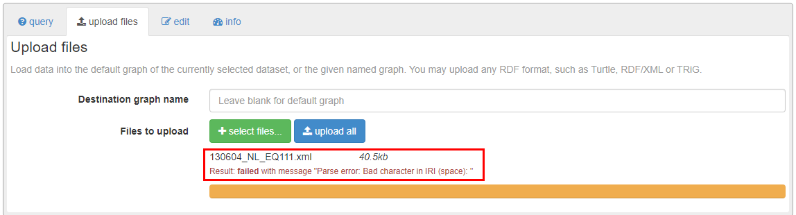 Apache Jena Fueski 웹 서버에 Dataset을 생성하고 파일을 업로드할 경우 triple을 계산해서 서버에 반영해야 하는데 위와 같은 에러가 발생할 경우가 있다.