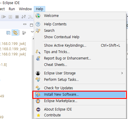 2) 이클립스 - Help - Install New Software.. 클릭