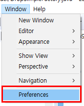 1. Window - Preferences로 이클립스 설정에 들어가 준다.