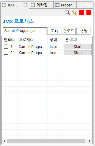 전역으로 선언한 mbeanModel에서 getProcessStatus를 호출하면 서버에서 기능을 수행하고 결과를 반환합니다.