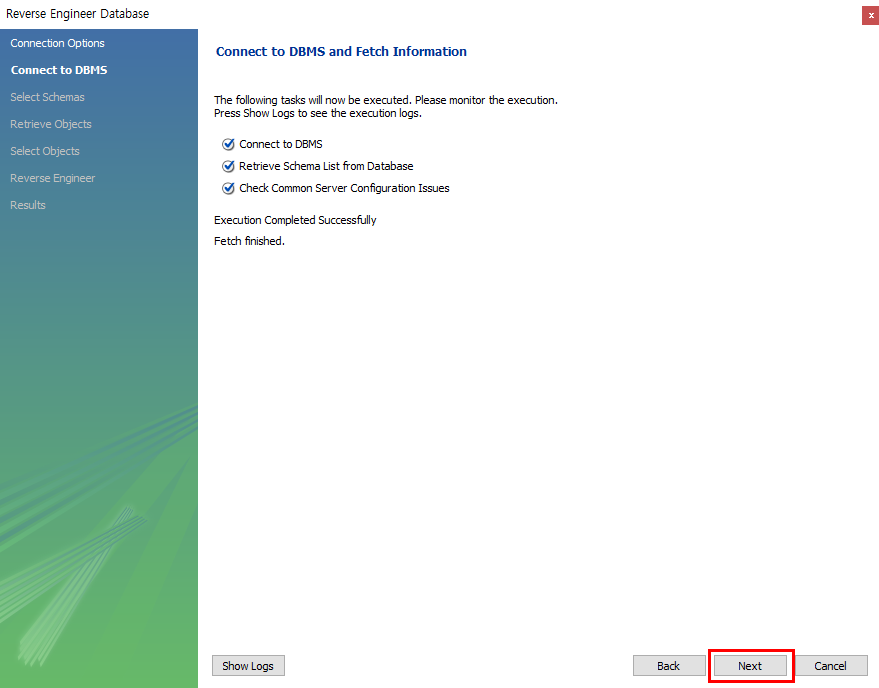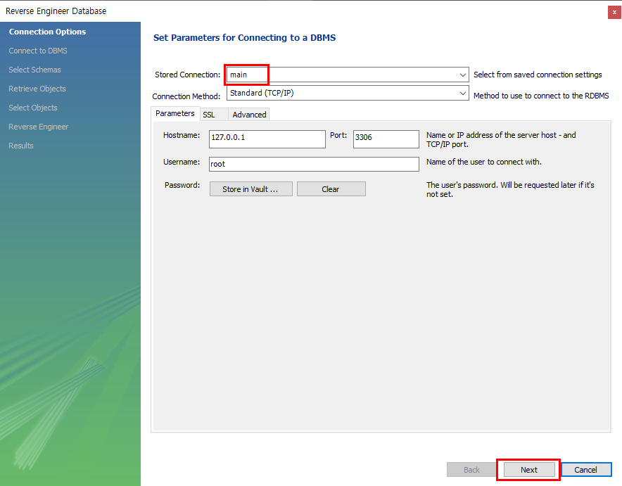 2. 현재 데이터베이스와 IP주소, Port, User를 확인하고 Next