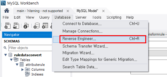 1. Database - Reverse Engineer... 클릭