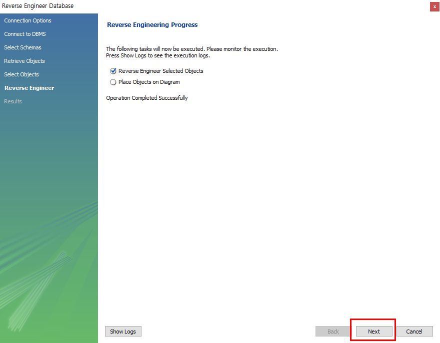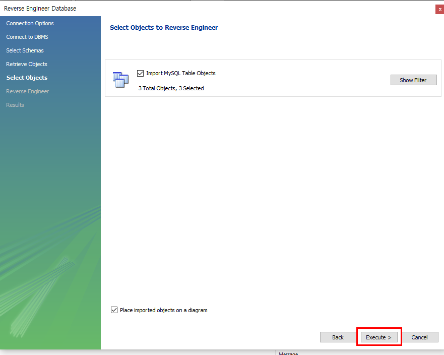 3개의 테이블=오브젝트가 선택되었고, Execute를 눌러 Diagram으로 변환하는 것을 실행시키면 됩니다.
