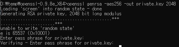 rem AES256으로 암호화된 2048bit 길이의 private key를 생성해줍니다.